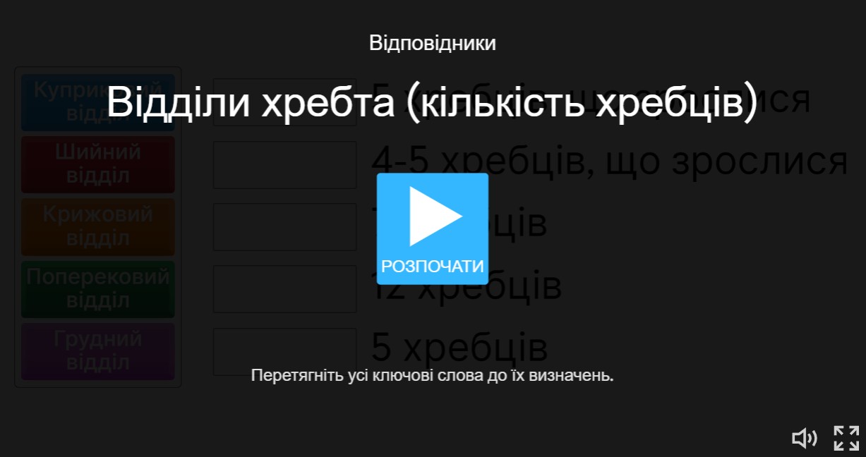 Біологія 8 кл – Тема 3. ОПОРНО-РУХОВИЙ АПАРАТ (§ 18 – 4) Скелет голови Скелет тулуба Відділи хребта Відділи хребта (кількість хребців) Скелет вільних верхніх кінцівок Скелет вільних нижніх кінцівок Скелет кінцівок людини