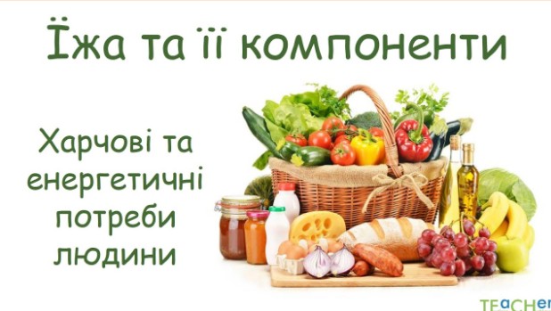 Біологія 8 кл – Тема 4. ТРАВНА СИСТЕМА (§ 29 – 2) Переглянути відео “Їжа та її компоненти. Харчові та енергетичні потреби людини” Переглянути відео “Чи стає наша їжа менш поживною” Переглянути відео “Вітаміни, їх роль в обміні речовин та енергії”