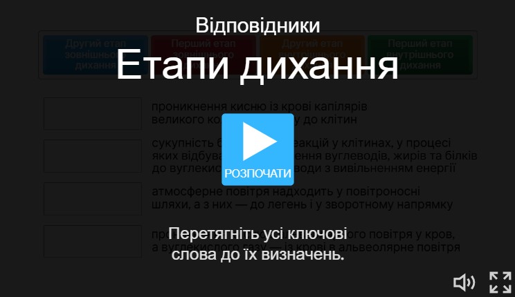 Біологія 8 кл – Тема 6. ДИХАЛЬНА СИСТЕМА ТА ГАЗООБМІН (§ 44 – 2) Газообмін у легенях Схема ланок дихання Етапи дихання